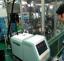 1,點(diǎn)膠機(jī). 熱熔膠通過點(diǎn)狀出膠嘴,噴出來后成點(diǎn)狀或者條狀. 這種一般用在小物件上面點(diǎn)膠貼合用. 如瓶蓋上打點(diǎn)膠.